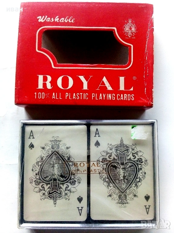 Две тестета карти за игра в комплект "ROYAL 100 % ALL PLASTIC", → Обява 53244448