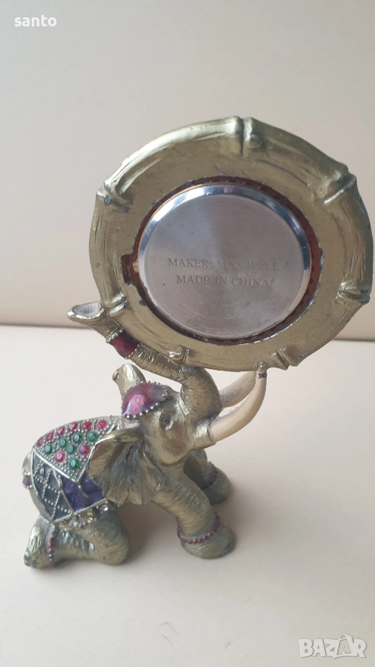 Красив и стилен часовник,фигурка на слонче което държи циферблата с хобота си. Детайлна изработка украсена с цветни камъчета.Часовника е тестван и работи,продава се без батерия.