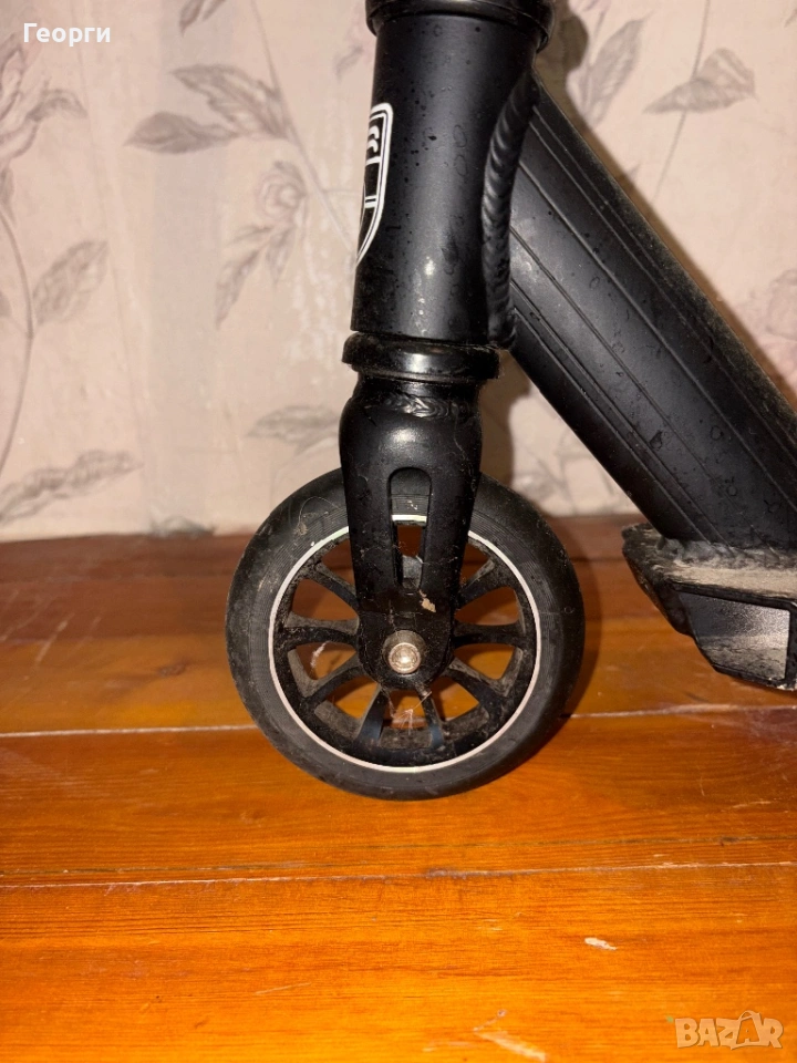 Тротинетката е употребявана, има външни драскотини, шкурката е леко изтъркана отстрани, но цялостната визия и употреба на тротинетката е запазена. Няма дефекти!