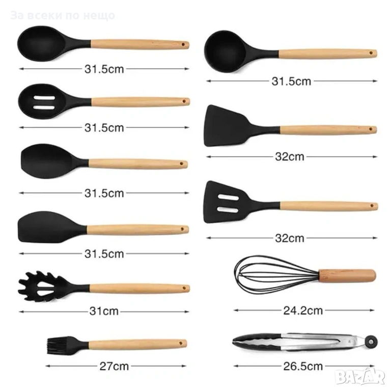 - Материал: Незалепващ силикон, неръждаема стомана, дърво