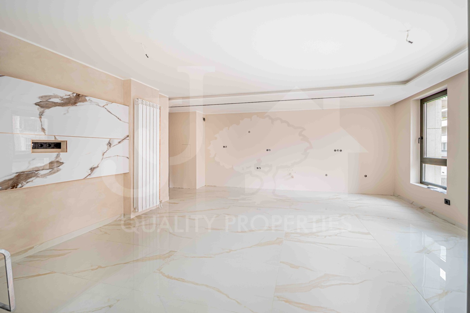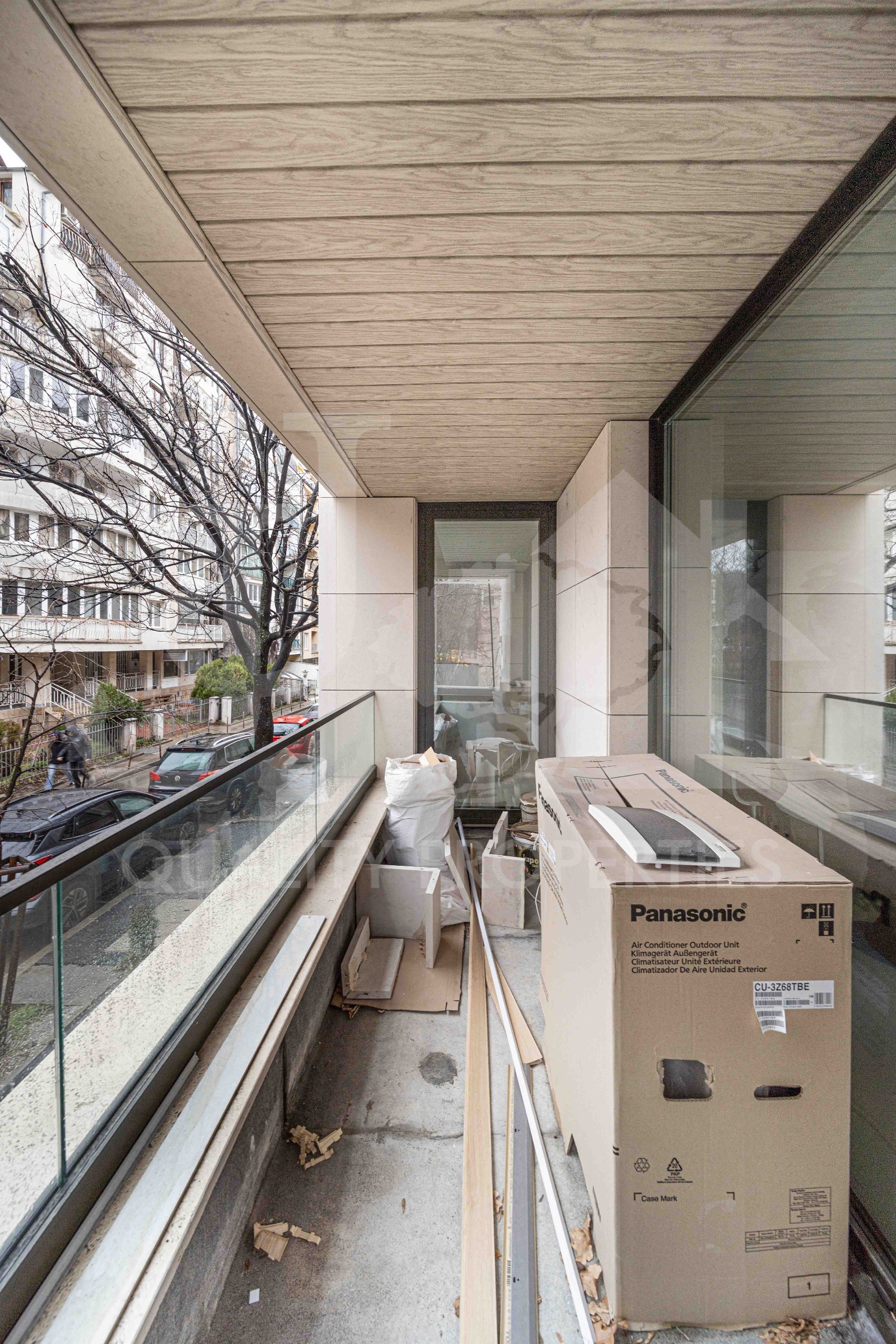 Имотът е разположен на втори етаж (първи над търговски обекти) в нова, луксозна тухлена сграда с Акт 16 (края на 2025 г.), отличаваща се с модерна архитектура и представителни общи части. Апартаментът е завършен с висок клас материали, тапетни интериорни врати, италиански гранитогрес, LED осветление, Smart Home готовност, висок клас климатици Panasonic във всички помещения, ТЕЦ и усещане за комфорт и стил във всеки детайл. Жилището е с обща площ от 112 кв.м, застроената му площ е 92,26 кв.м и има следното функционално разпределение: голямо входно антре с площ от 9,24 кв.м, просторна дневна с кухня (27,85 кв.м), трапезария и излаз към лоджия, спалня - 16,84 кв.м със собствена баня с тоалетна изпълнена с микроцимент (3,09 кв.м), втора спалня - 14,55 кв.м, втора баня с тоалетна -2,75 кв.м, склад. Към апартамента има мазе 2,5 кв.м и възможност за закупуване на подземен гараж с площ от 15 кв.м на допълнителна цена от 60 000 евро. Имотът е отличен избор както за лично ползване, така и за инвестиция в район с изключително ограничено ново строителство.