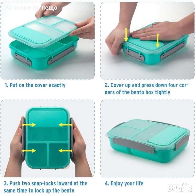 Кутията е снабдена и с практична лъжица, така че да сте готови за обяд по всяко време, без да се притеснявате за допълнителни прибори. Модерният дизайн и лекотата на употреба я правят идеалния избор за активния човек, който цени здравословното хранене и организацията.
