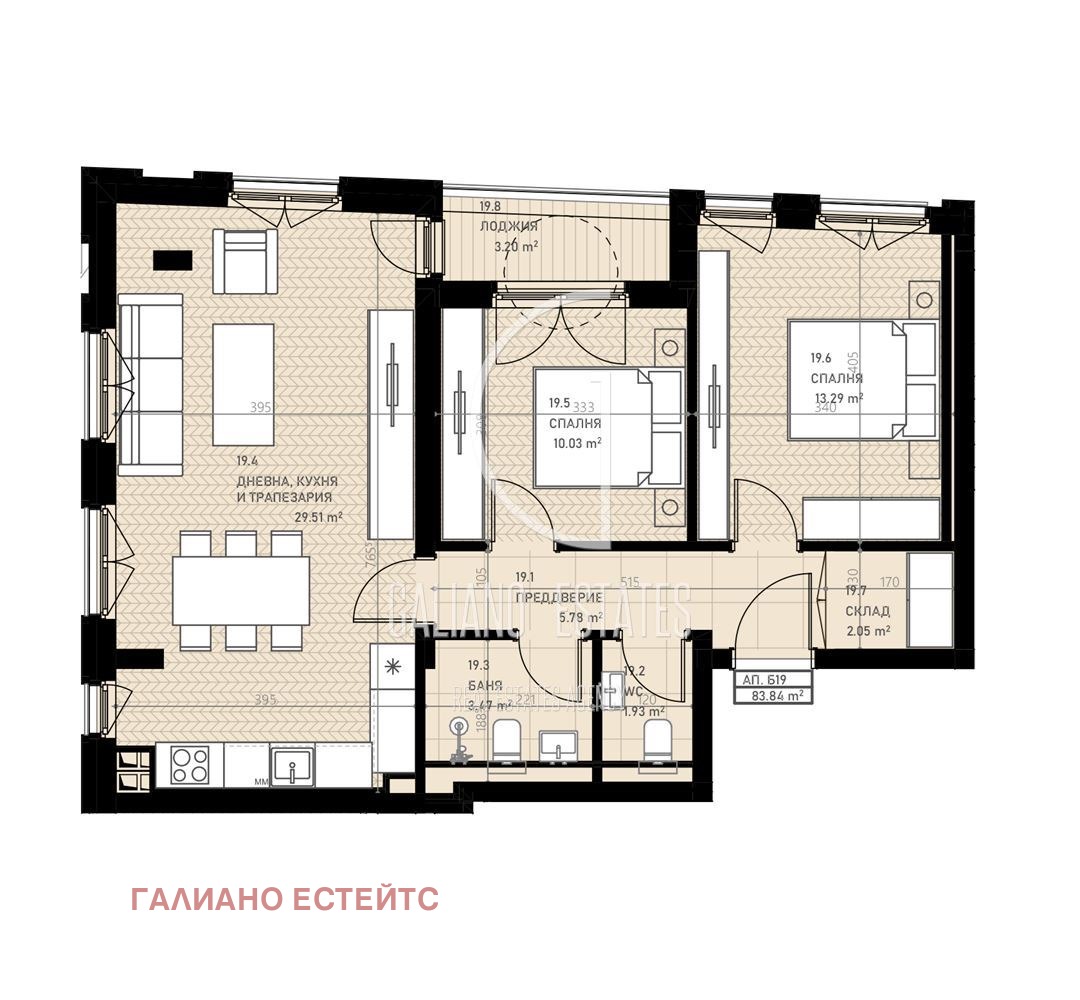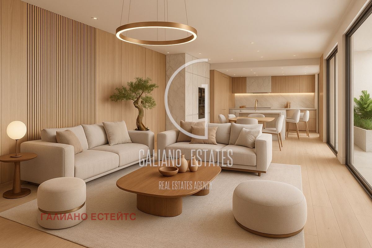 Galiano Estates ви предлага чудесен тристаен апартамент за продажба. Жилището разполага с преддверие, всекидневна с кухненски кът и трапезария, две големи спални, баня с тоалетна, втора тоалетна, складово помещение и тераса. Това е нов проект, който съчетава качествено строителство и премиум завършване на общите части. Модерна архитектура, вентилируема фасада и отлична топлоизолация за висока енергийна ефективност. Акт 14 е предвиден за края на 2026г, акт 16 за края на 2027г. Без индексации на цените. Посочената цена е при схема на плащане 20% на Предварителен договор, 70% на Акт 14 и 10% на Акт 16. Има няколко варианта на плащане: