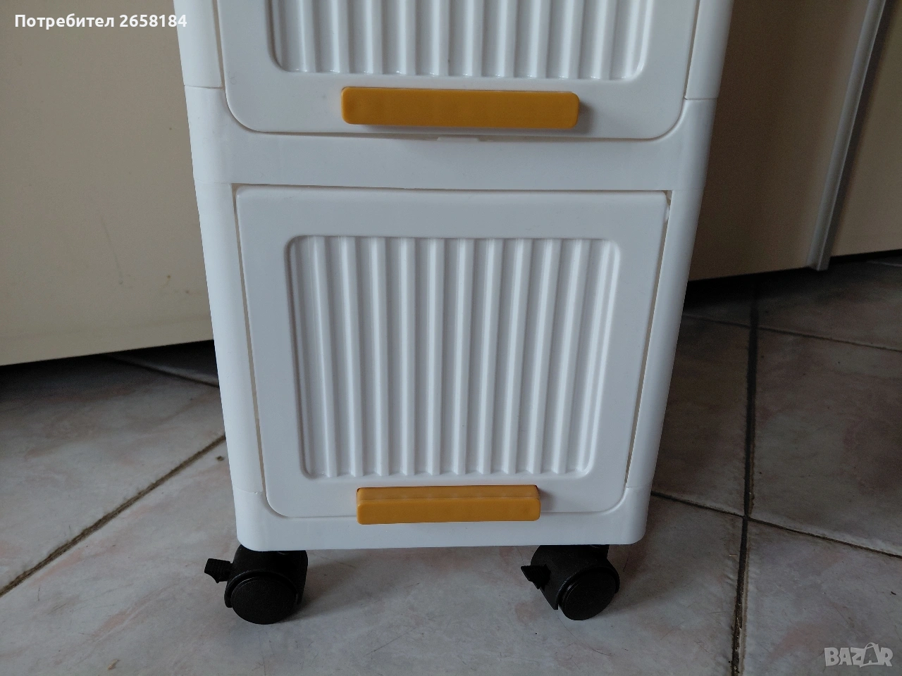 С полу- прозрачни вратички, вис.90см, шир.20/20, НОВА. с вдигащи вратички и колелца със стопери. Подходящо за баня, спалня, кухня, тераса... Налично. 25 евро. За София безплатна доставка.