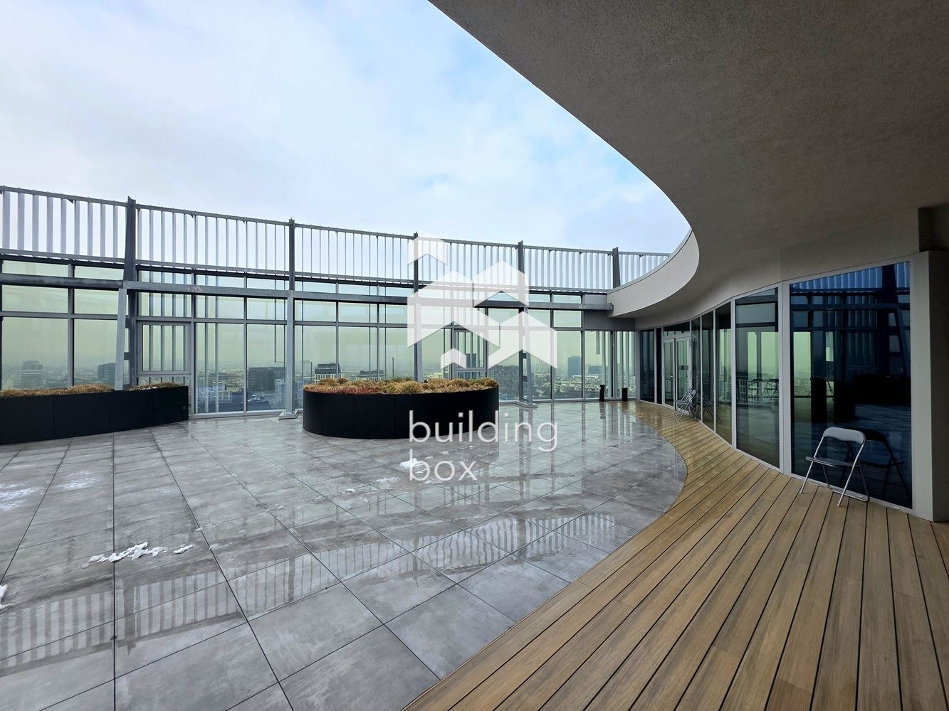 Сграда: представителна бизнес сграда, разполагаща с видеонаблюдение, контрол на достъпа - индивидуални карти за достъп, портиер, 3 високоскоростни асансьора, функционални опън спейс площи, достъп до панорамна покривна тераса, рецепция и ресторант на първи етаж, паркинг. Фасадата е с отличителна и модерна архитектура и дизайн.