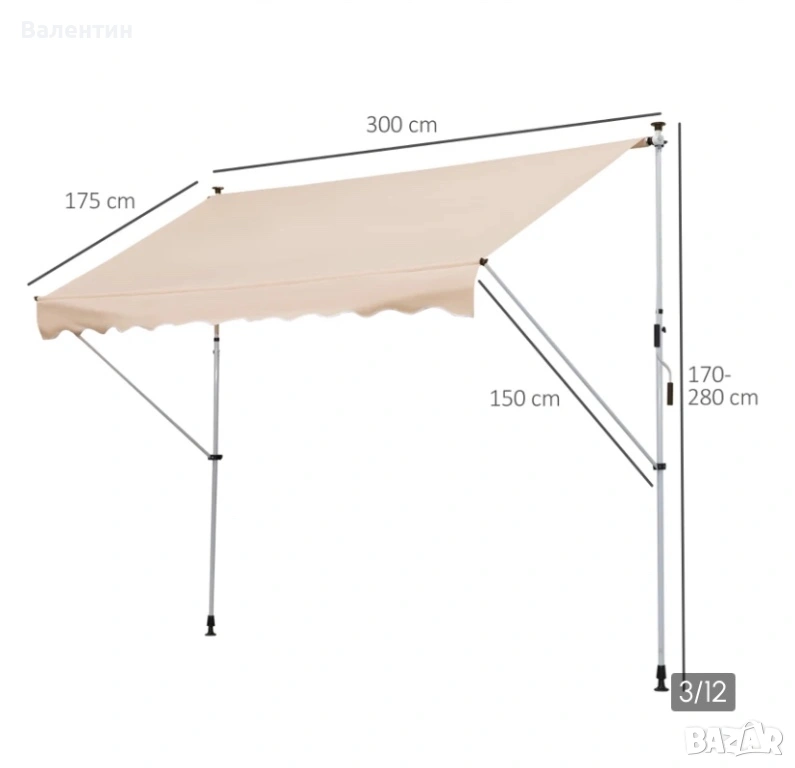 Регулируема външна тента  3 х 1.5 м, снимка 1 - Други стоки за дома - 53245710 Регулируема външна тента  3 х 1.5 м, снимка 2 - Други стоки за дома - 53245710 Регулируема външна тента  3 х 1.5 м, снимка 3 - Други стоки за дома - 53245710 Регулируема външна тента  3 х 1.5 м, снимка 4 - Други стоки за дома - 53245710 Регулируема външна тента  3 х 1.5 м, снимка 5 - Други стоки за дома - 53245710 Регулируема външна тента  3 х 1.5 м, снимка 6 - Други стоки за дома - 53245710 Регулируема външна тента  3 х 1.5 м, снимка 7 - Други стоки за дома - 53245710 Регулируема външна тента  3 х 1.5 м, снимка 8 - Други стоки за дома - 53245710 Регулируема външна тента  3 х 1.5 м, снимка 9 - Други стоки за дома - 53245710 1/9