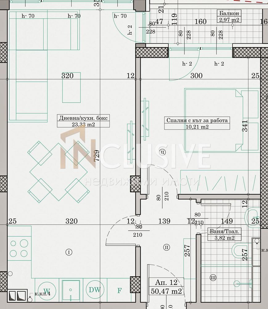 INCLUSIVE НЕДВИЖИМИ ИМОТИ предлага ексклузивно за продажба двустаен апартамент в новострояща се жилищна сграда Атриа , разположена в предпочитания квартал Кайсиева градина район с удобен градски транспорт, близост до магазини, училища, детски градини и бърз достъп до основни булеварди.