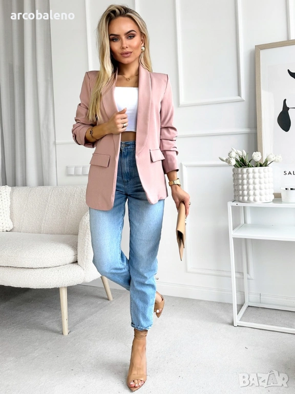 Елегантно дамско сако с драпирани ръкави, модерно и стилно, 10цвята
