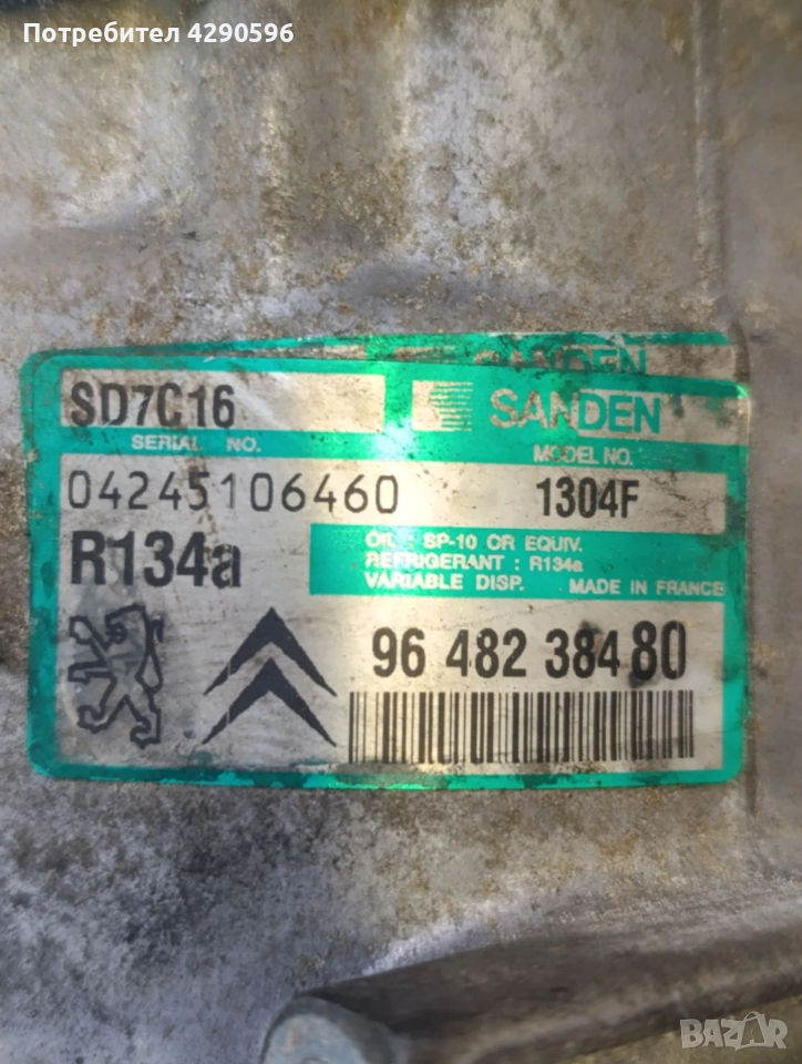 Компресор климатик 9648238480 / SD7C16 / 1304F / Пежо 407 / Ситроен Ц5 / 1.6 hdi → Обява 53245890