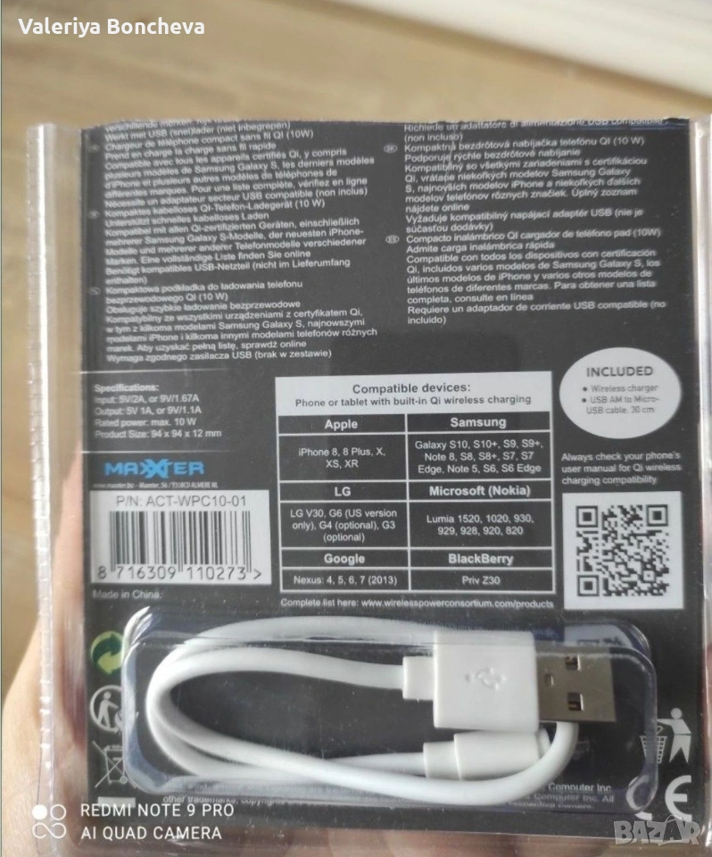 Безконтактно зарядно за телефон. Чисто ново . Поддържа определи телефони. На една от снимките могат да се видят Не изпращам със Спиди
