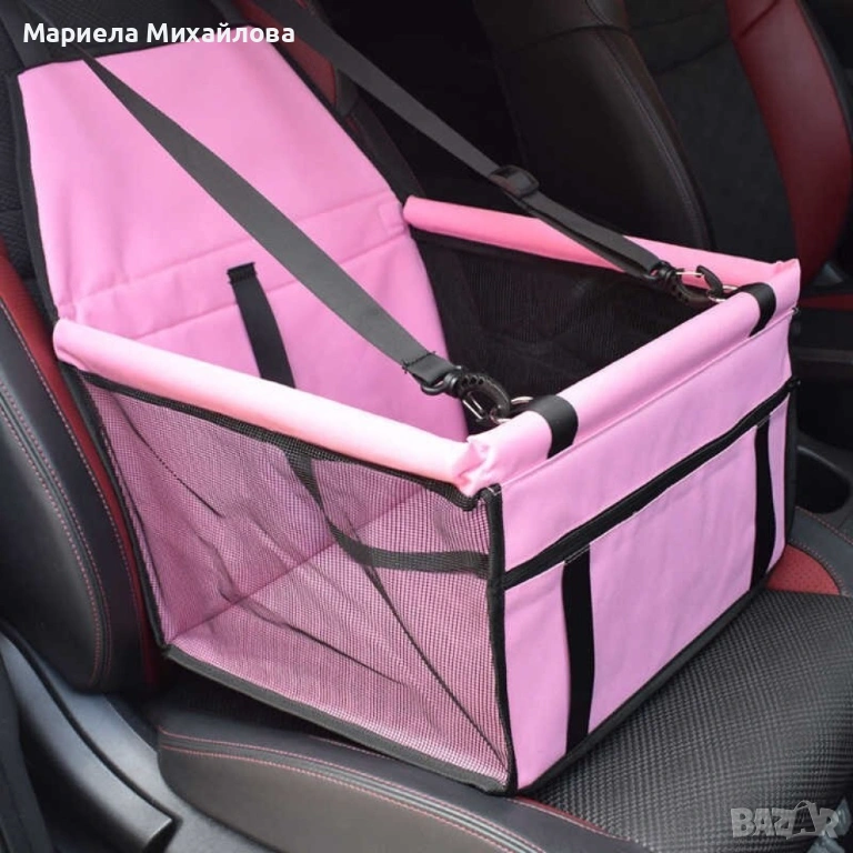 Седалка за куче, за кола P E T L I F E / Цвят: Розов/ Предотвратява движението на кученцето в автомобила по време на шофиране и отклоняването на вниманието на шофьора, което може да предизвика инцидент; Седалката е подходяща и за транспортиране на котки; Материал: Оксфорд 600D; Размери: 40 x 30 x 25 см; Дължина на предпазния колан: 46см; Регулируеми ленти за закрепване: 90 см - 160 см.