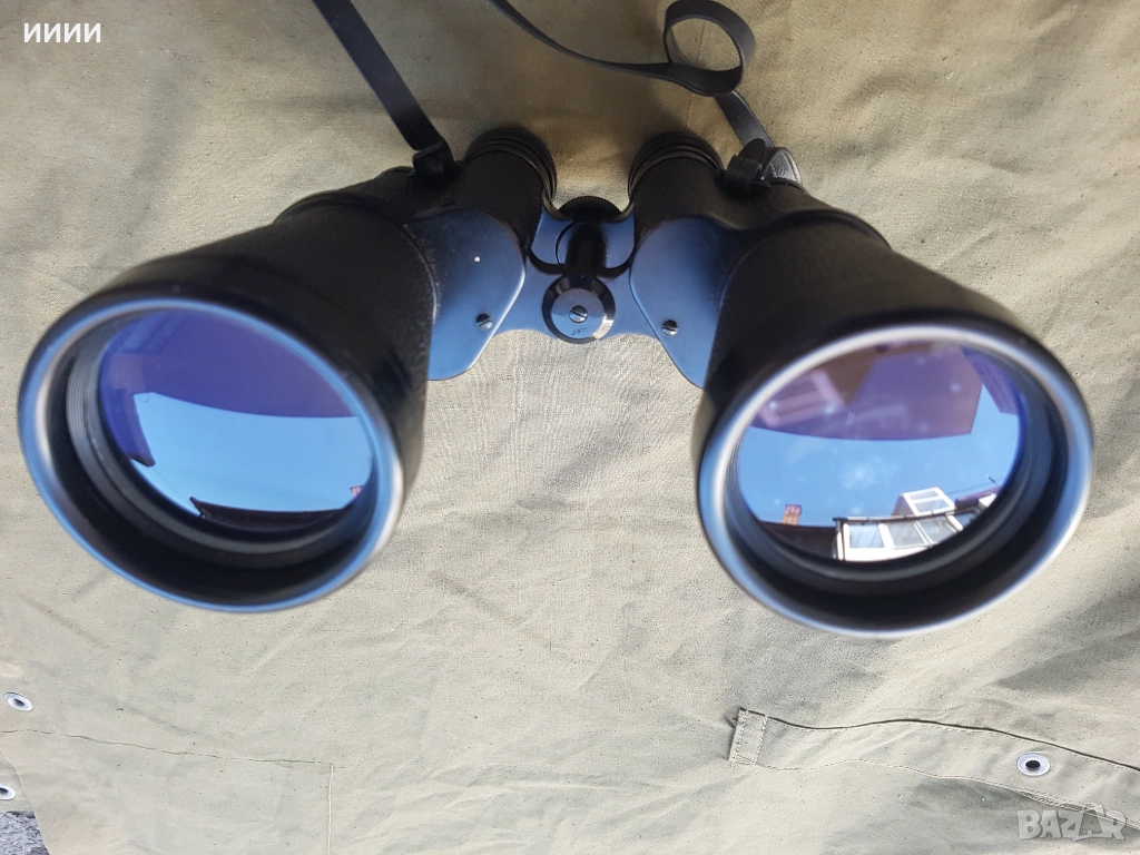 Най-мощният граждански бинокъл, с 20 кратно увеличение. Гледа кристално ясно в един общ кръг, няма двоен образ, няма запрашвания, няма гъби, въобще е без забележки. С тапи отпред и отзад и с оригинален калъф.