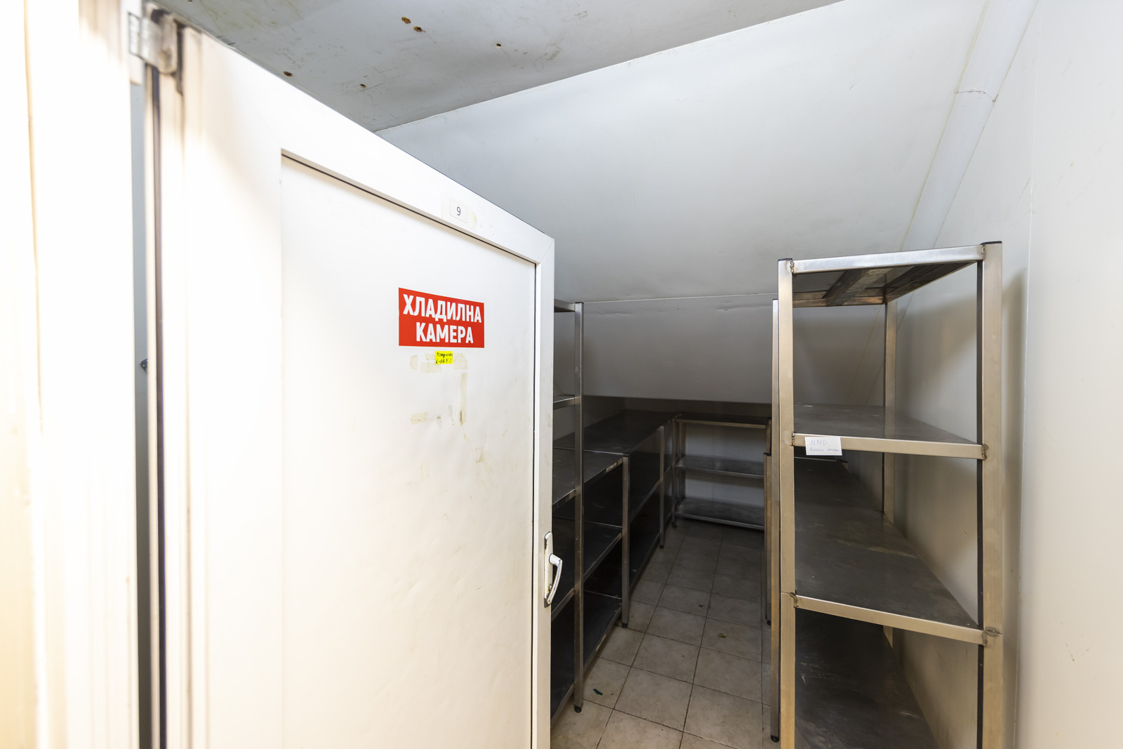 220 м² кухня в сутеренен етаж (топла и студена кухня, хладилна стая, помещение с пеш, санитарен възел за персонал, миялно помещение, офис, съблекална, сух склад)