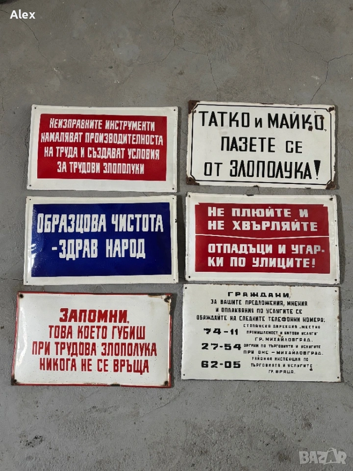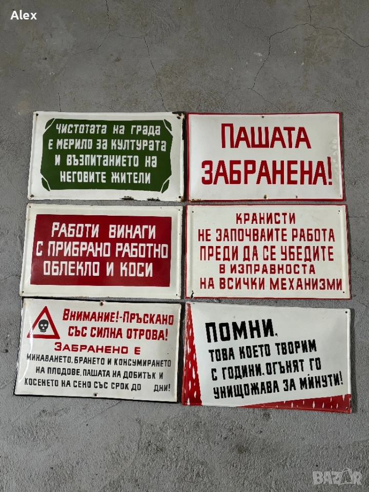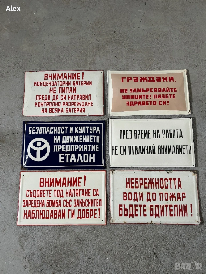 Емайлирани табели от времето на Социализма.Различни размери и цени.
