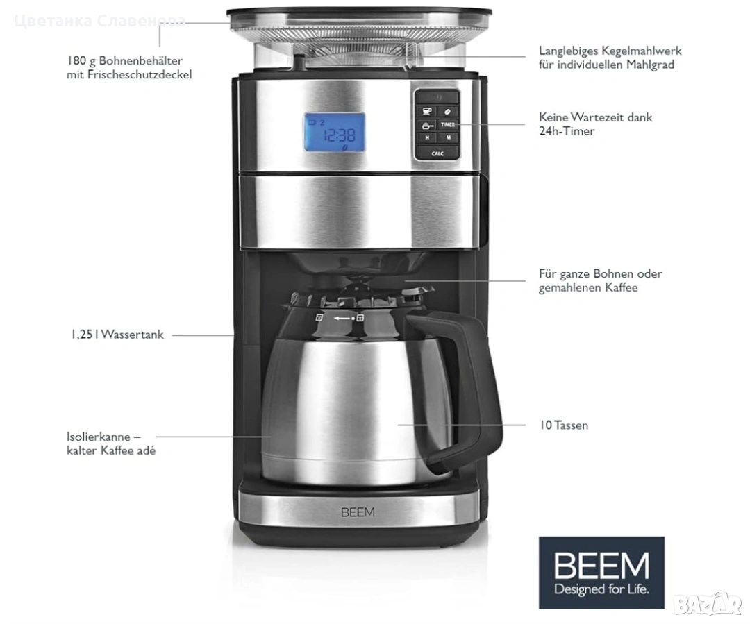 Кафемашина с филтър BEEM FRESH-AROMA-PERFECT II с мелачка - Duo 2 кани 1000 W → Обява 53247061