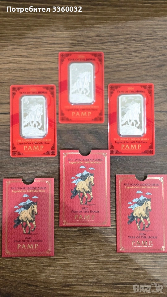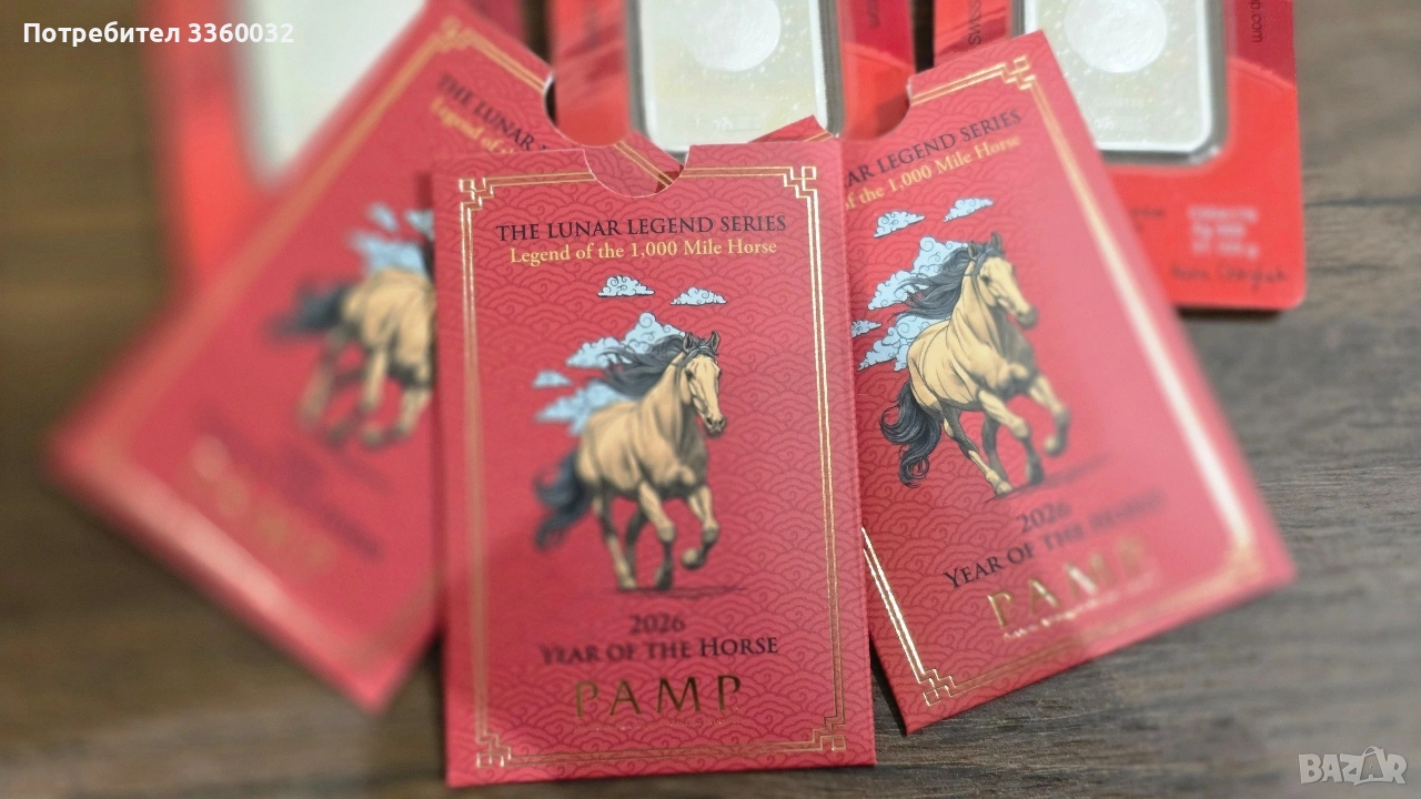 Кюлче "Година на Коня 2026" - Легендата за Коня на 1000 мили Предлагам за продажба изключително красиво и ценно сребърно кюлче от световноизвестната швейцарска рафинерия PAMP Suisse. Това емисия за 2026 г. е част от престижната серия "Легендите на Луната" (Lunar Legends Series) и почита митичния "Кон на хиляда мили" (Qianli Ju) от класическия китайски фолклор.