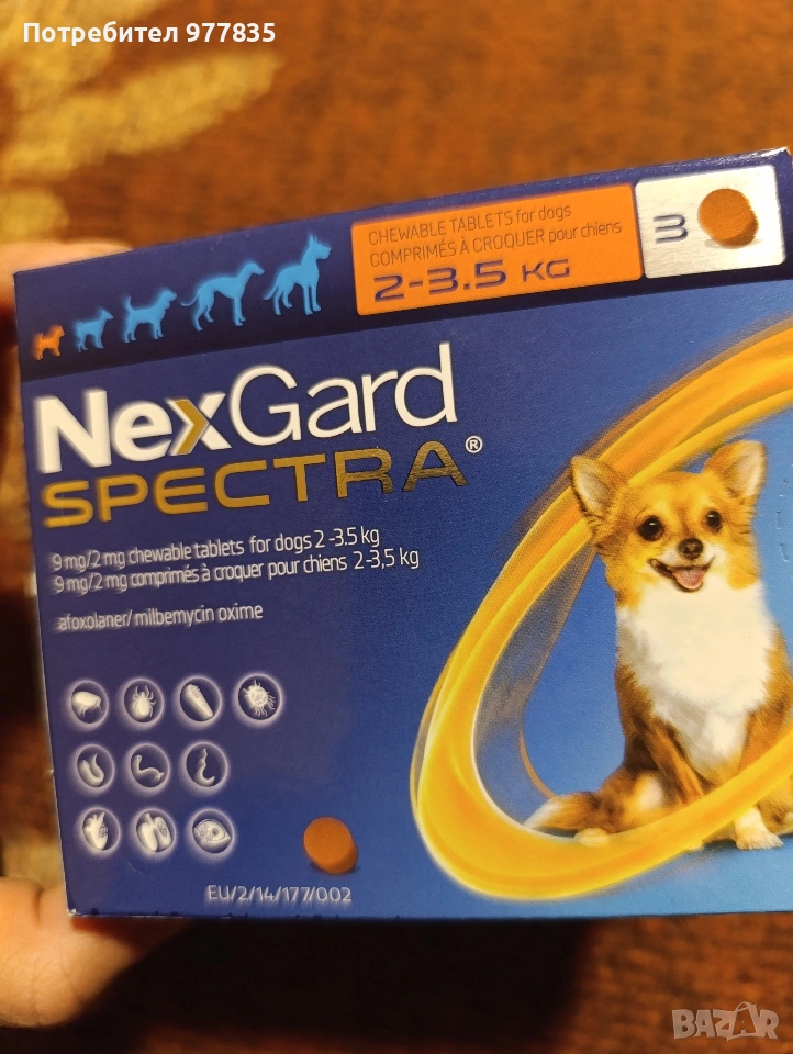 Afoxolaner 9.375 mg и Milbemycin oxime 1.875 mg