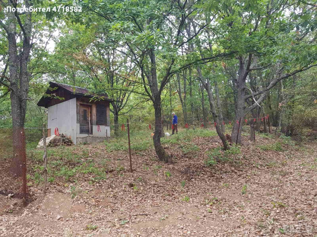 В парцела има малко фабричноизработено дървено бунгало около 9 кв.м.