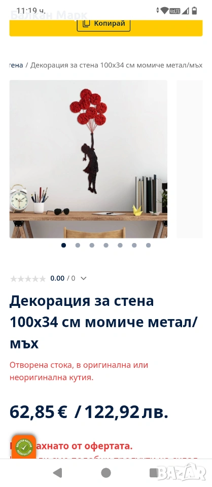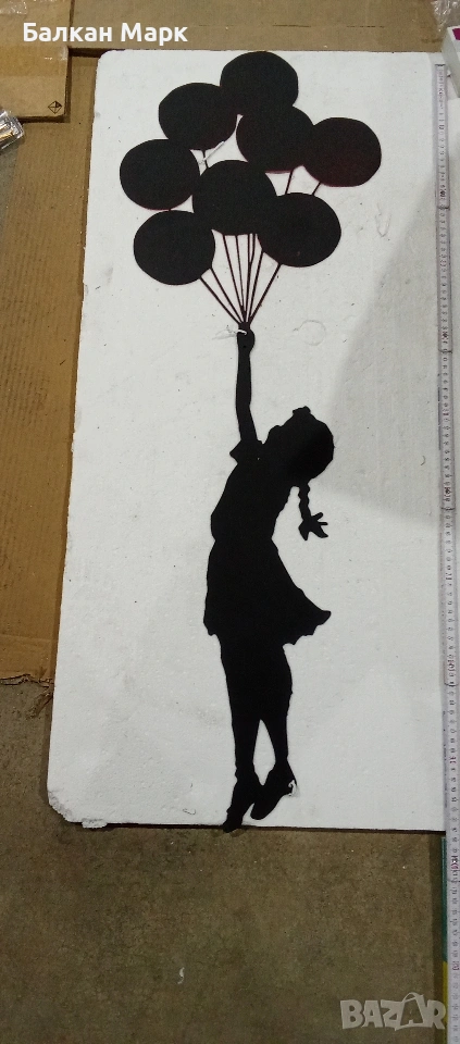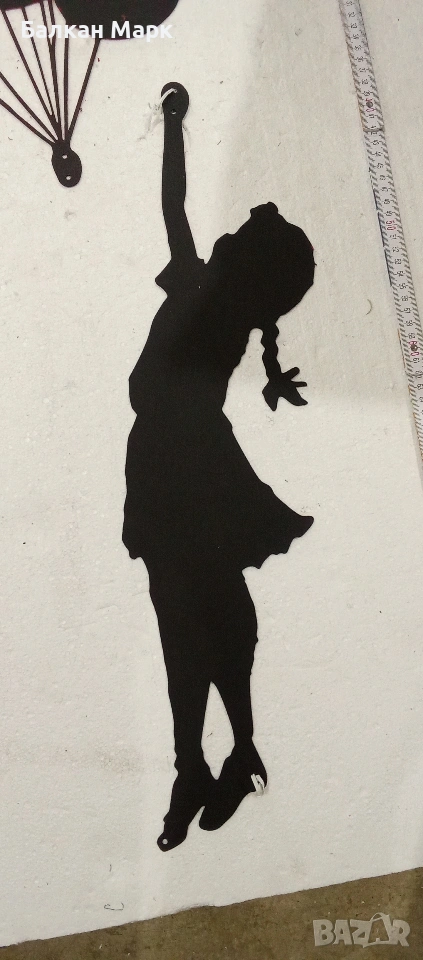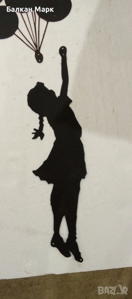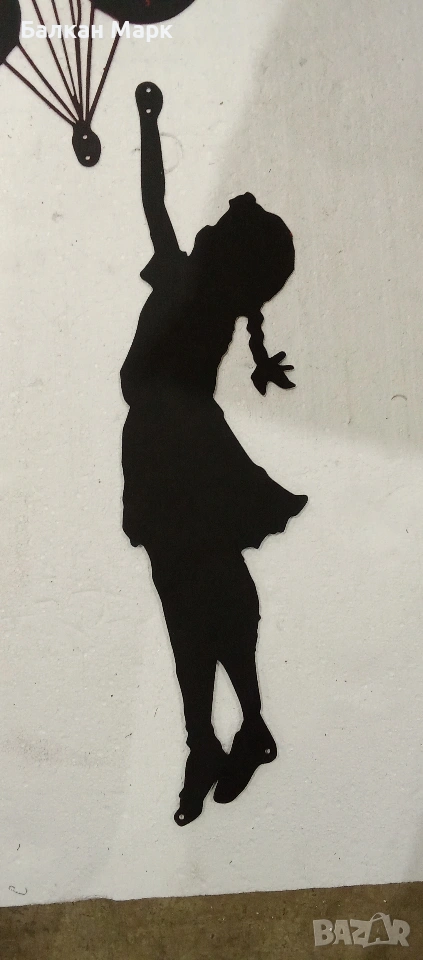 Предлагам декоративна метална фигура за стена – „Момиче с балони“, с артистичен дизайн.