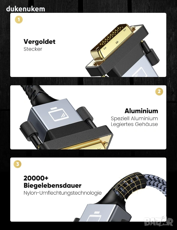 Кабелът предава само видео сигнал (DVI не поддържа аудио).