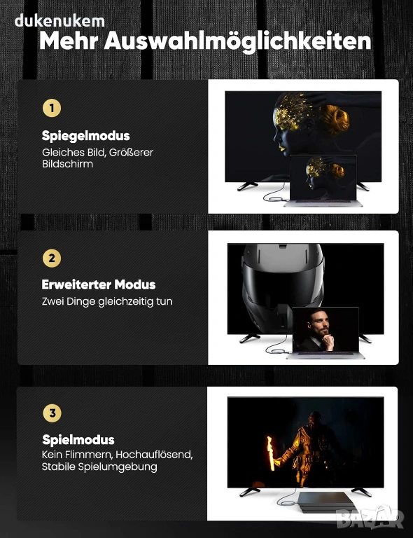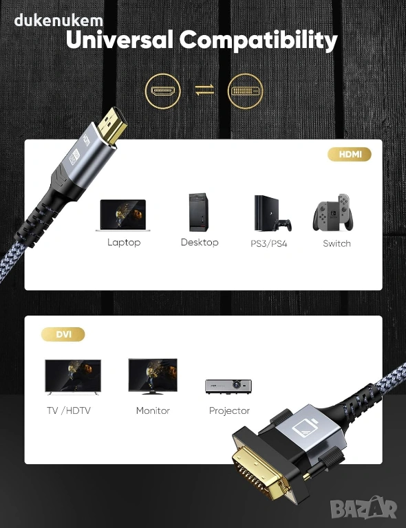 Съвместим с устройства като PC, лаптопи, PS3, PS4, Xbox, проектори и монитори