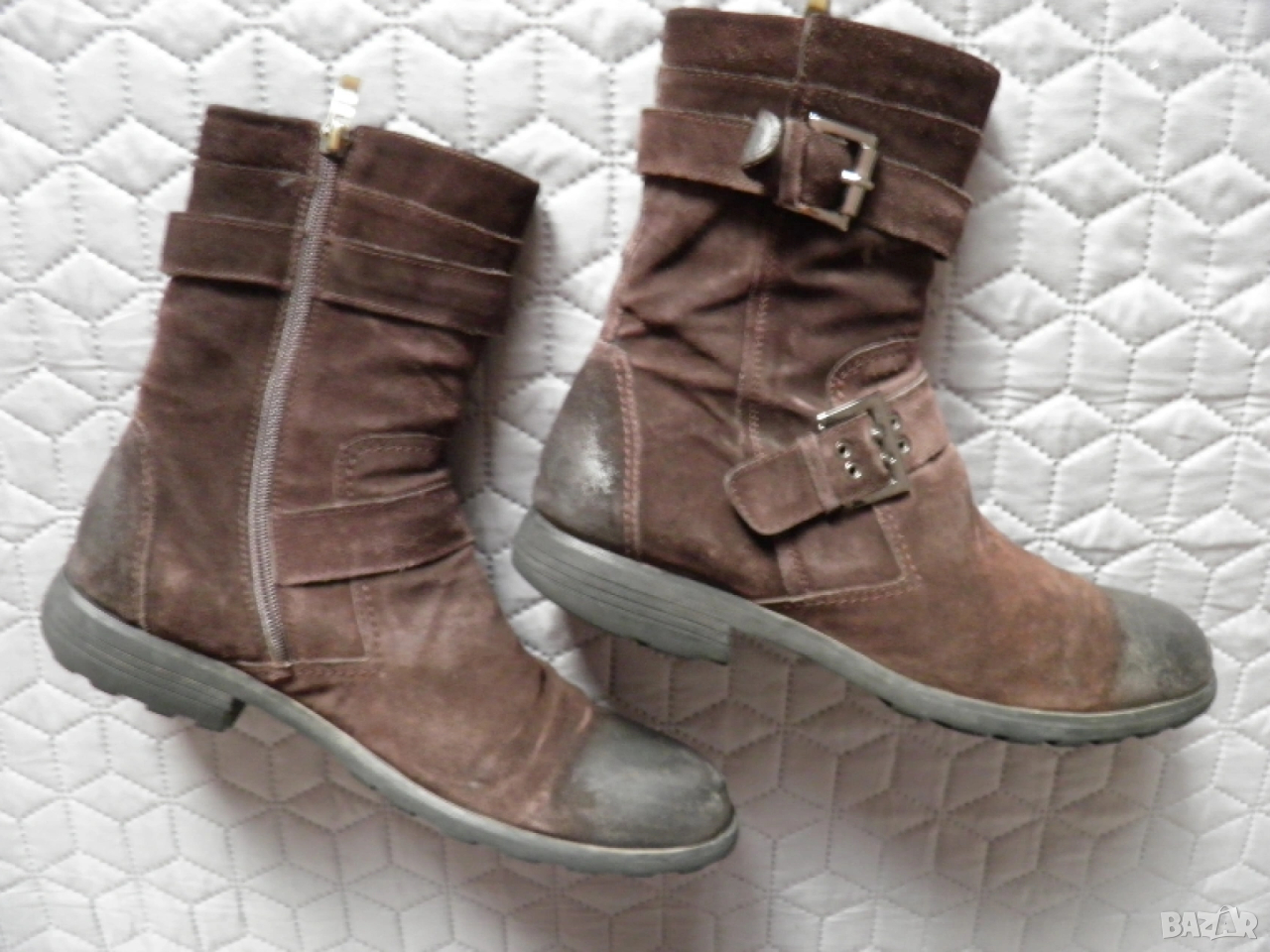 Оригинални мъжки ботуши от естествен кафяв велур → Обява 53248379