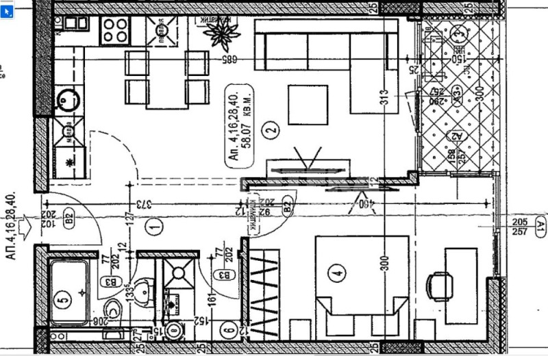Застроена площ 58,08 кв.м / обща площ 73.87 кв.м.