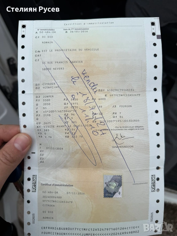 -редовни документи, внос Франция