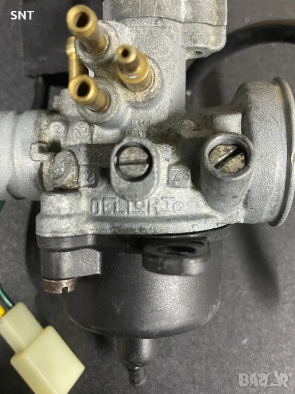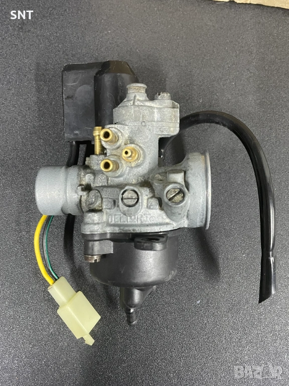 Оригинален карбуратор DELLORTO PHVA 12 за скутери 50cc 2T с двигатели Minarelli. Диаметър 12mm автоматичен електрически смукач. Подходящ за Beta, Malaguti, MBK, Yamaha, Rieju.Свален е от Yamaha Aerox здрав и работи отлично.Към него има Всмукателен колектор и Клаподържач .
