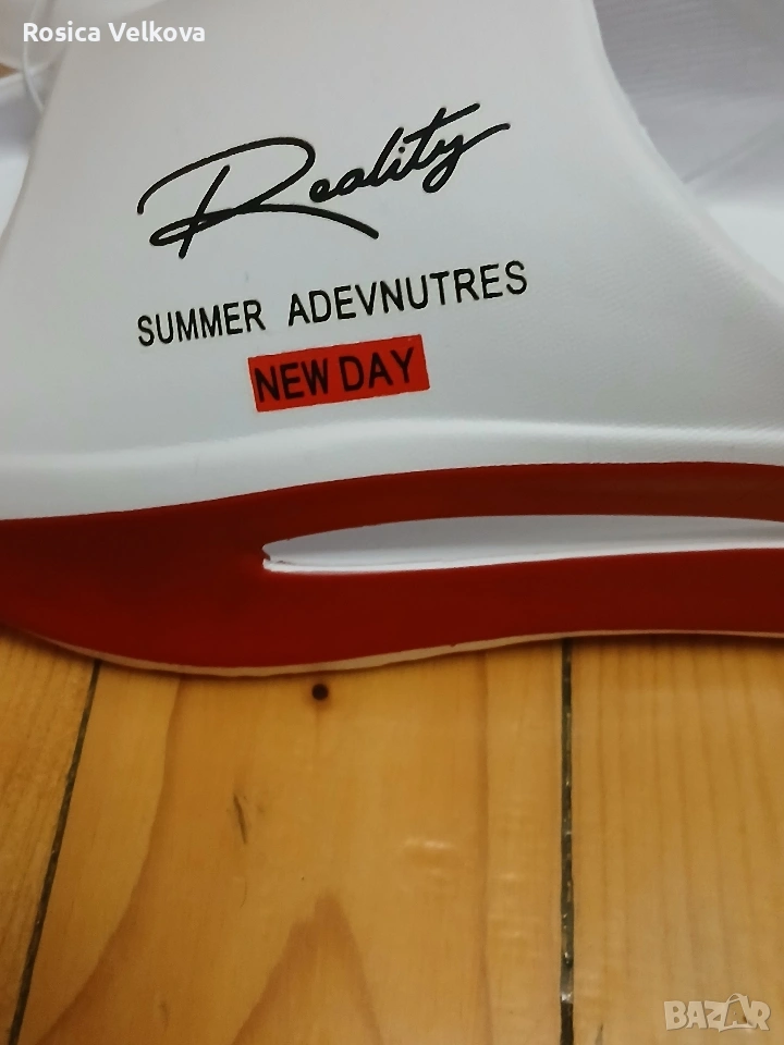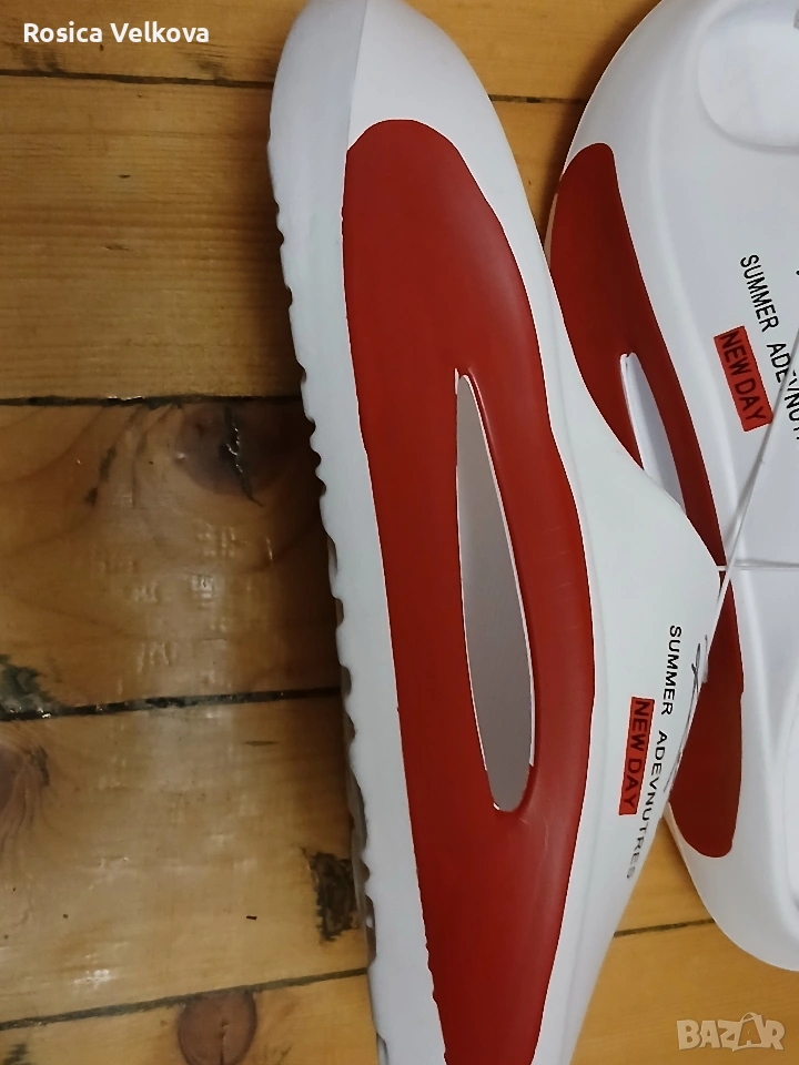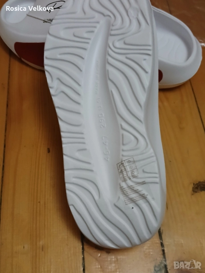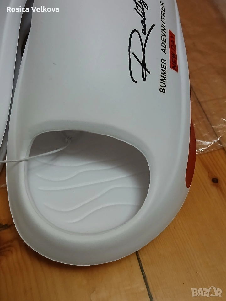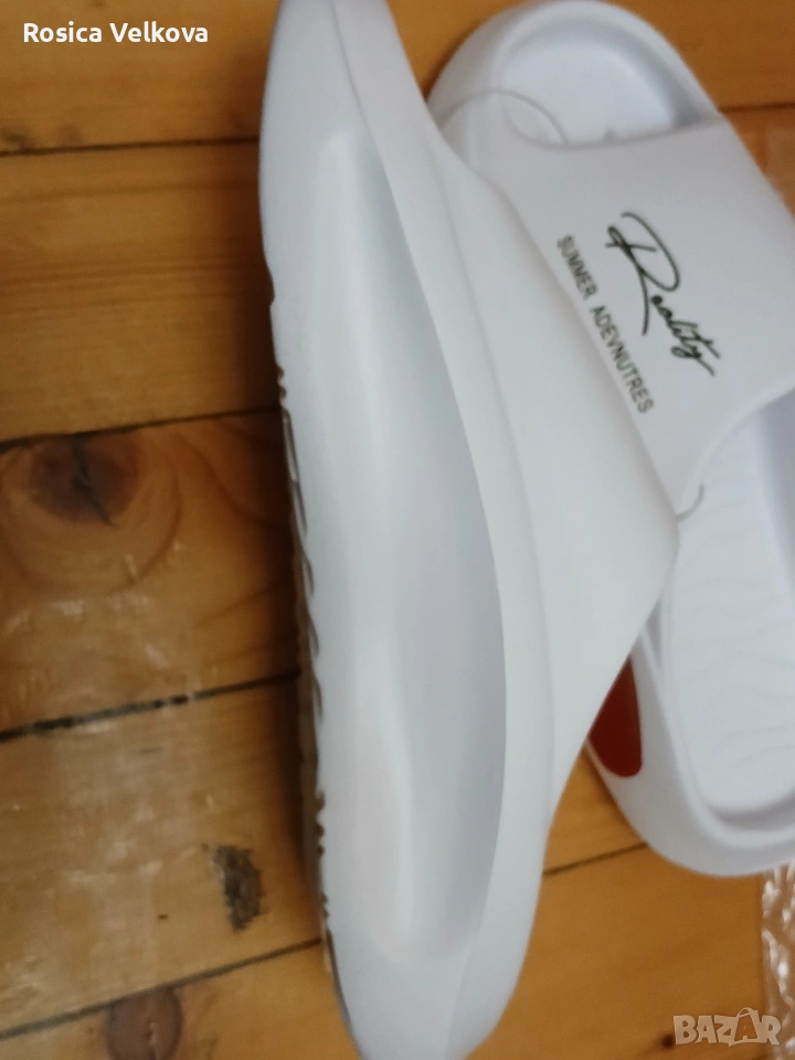 Страхотни летни джапанки (чехли) бял цвят логото на марката много удобни не си отговарят на номера стелки 29 см