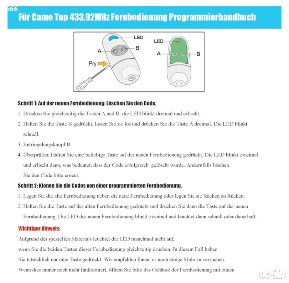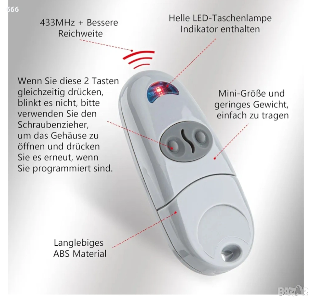 Съвместимо дистанционно управление 433 MHz, разстояние на предаване 50-100m, включва батерия → Обява 53248919