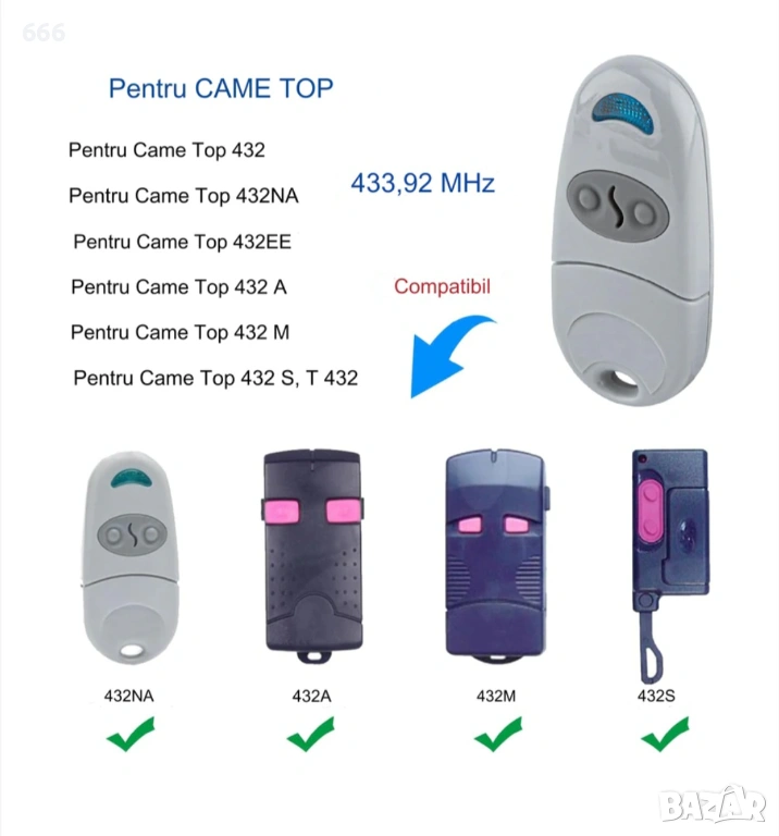 За Came Top 432, 432NA, 432 SA, 432EE, 432 A, 432 M, 432 S, T 432 433 MHz
