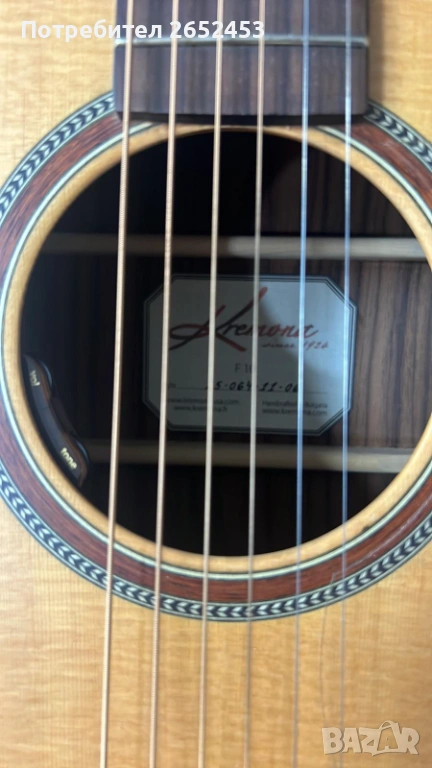 Кremona F10 лично избрана за мен от фабриката в гр. Казанлък от лютиер Галин и сетната от него от, като е добавил и акустична пикап система.