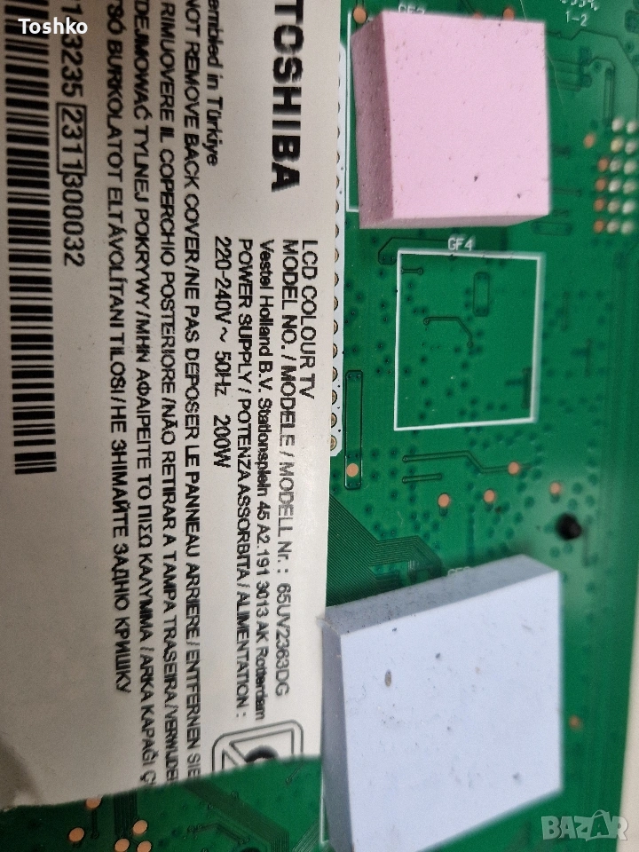TOSHIBA 65UV2363DG MAIN 17MB180V POWER 17IPS72 TCON PT650GT01-1-C-3 PANEL VES650QNFH-N1-Z01 → Обява 53249069