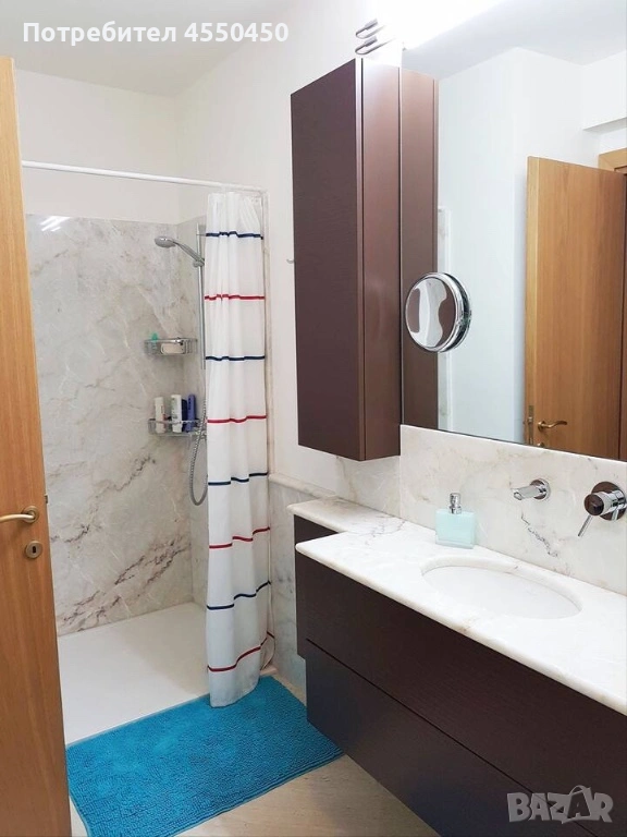 Две стаи с по една двойна спалня, голяма баня с тоалетна, балкони