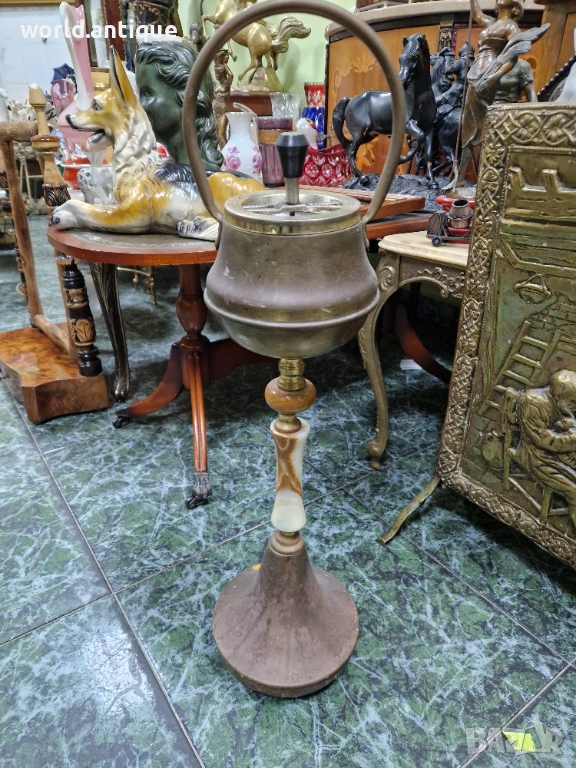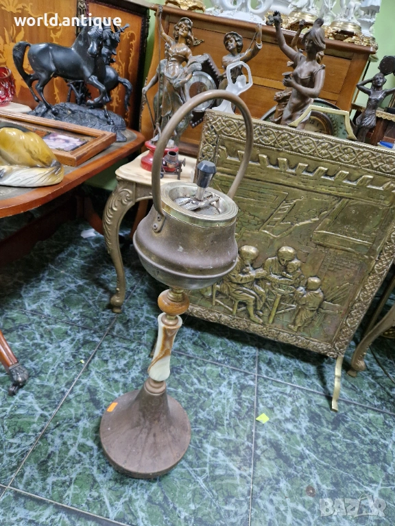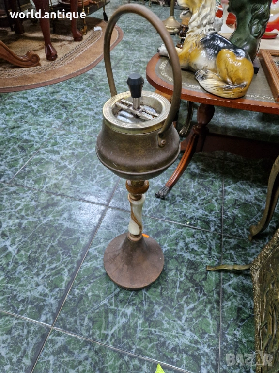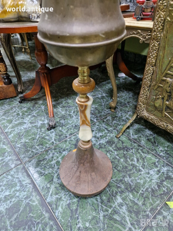 Страхотен антикварен белгийски подов пепелник от бронз и оникс → Обява 53249208