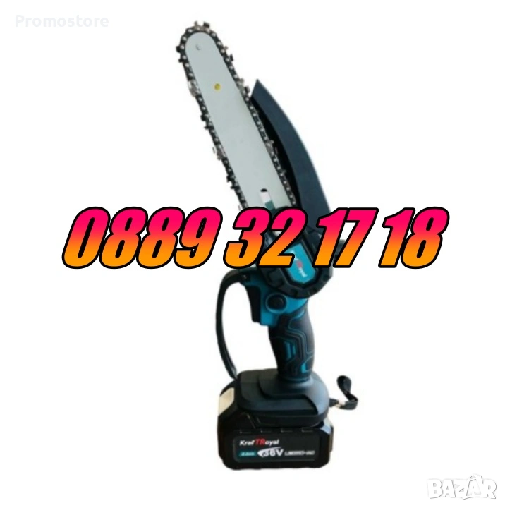 Комплект 4 в 1 от акумулаторна лозарска ножица, акумулаторен мини верижен трион с 15 см шина, акумулаторен въздушен турбо пистолет и телескопичен прът 36V 8Ah