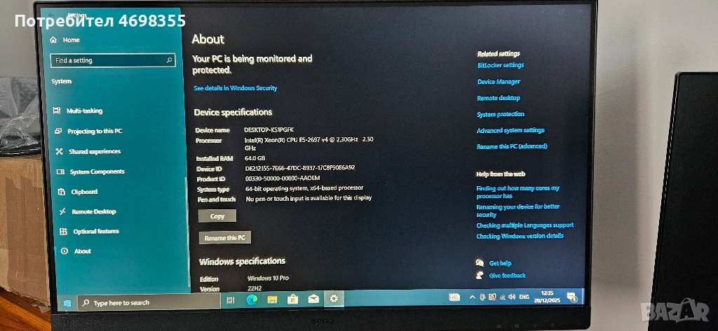 Windows 10 Pro ( не поддържа Win 11 ), може да работи на Linux