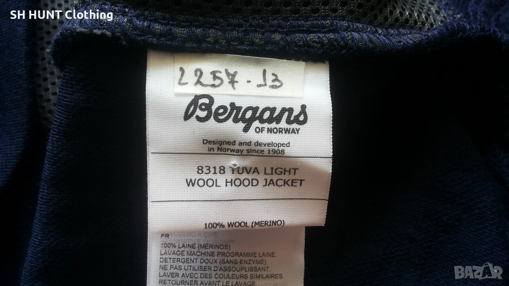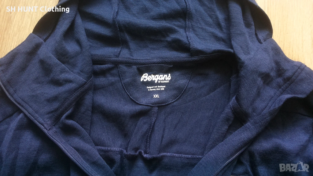 Bergans of NORWAY TUVA LIGHT WOOL HOOD Jacket 100% Merino Wool размер XXL суичър - 1970
