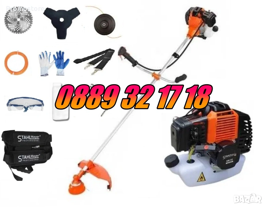 Четиритактов бензинов тример 74 куб., моторна косачка за трева + самар → Обява 53249599