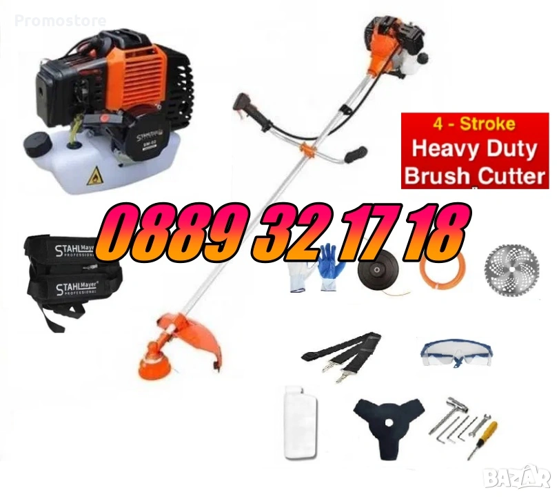 Четиритактов бензинов тример 74 куб., моторна косачка за трева + самар