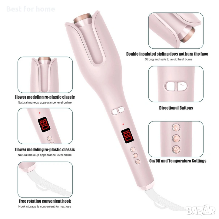 Автоматично 360-градусово навиване: Спестява време и усилия, като оформя симетрични и красиви къдрици без риск от заплитане.