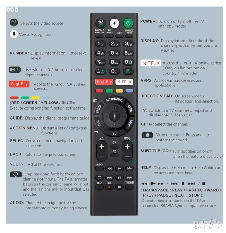 Дистанционно за телевизор Sony, подходящо за различни LCD модели от 43 до 85 инча. → Обява 53249951