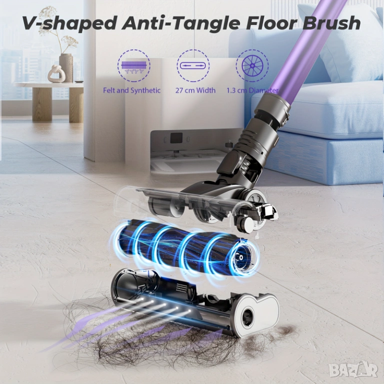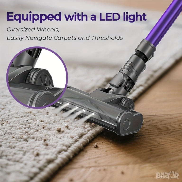 ✔️ Осветление на четката – виждаш праха дори под мебелите 💡