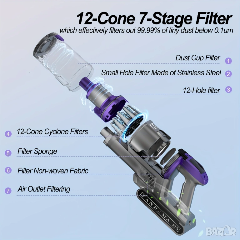 ✔️ 7-степенна филтрация – улавя 99.9% прах, косми и алергени 🧼