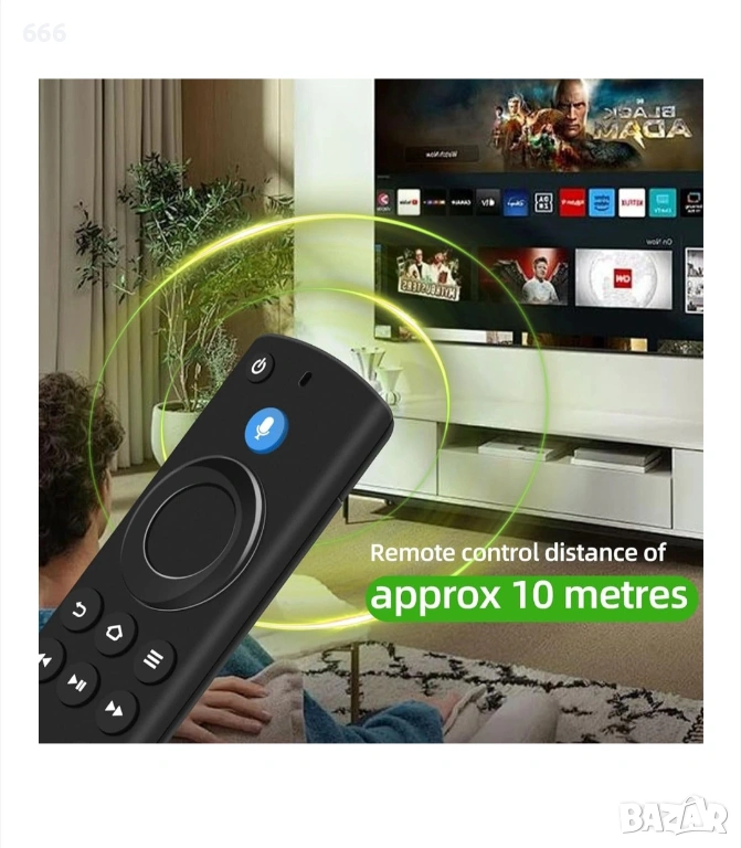 Дистанционно управление, SINBINTA, Гласово дистанционно управление, Устойчиво на падане, Устойчиво, Бутон за бърз достъп, Лесно сдвояване, 10 м работно разстояние, За Fire Stick TV, FireStick Lite, Fire TV Cube, Пластмаса/Силикон, 140*38*16мм, Черен