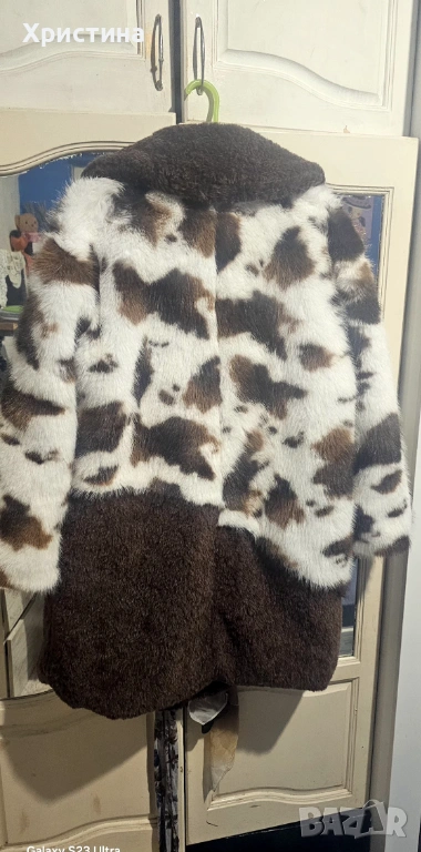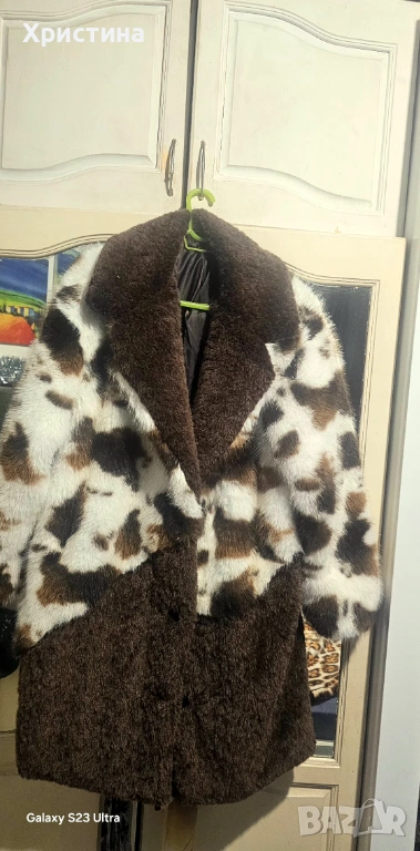 Чисто ново, много топло, с широки джобове. Косъмът е неразличим от естествен. Не съм улучила номера за мен, за това го продавам.Палтото е уникално, на живо е още по красиво.