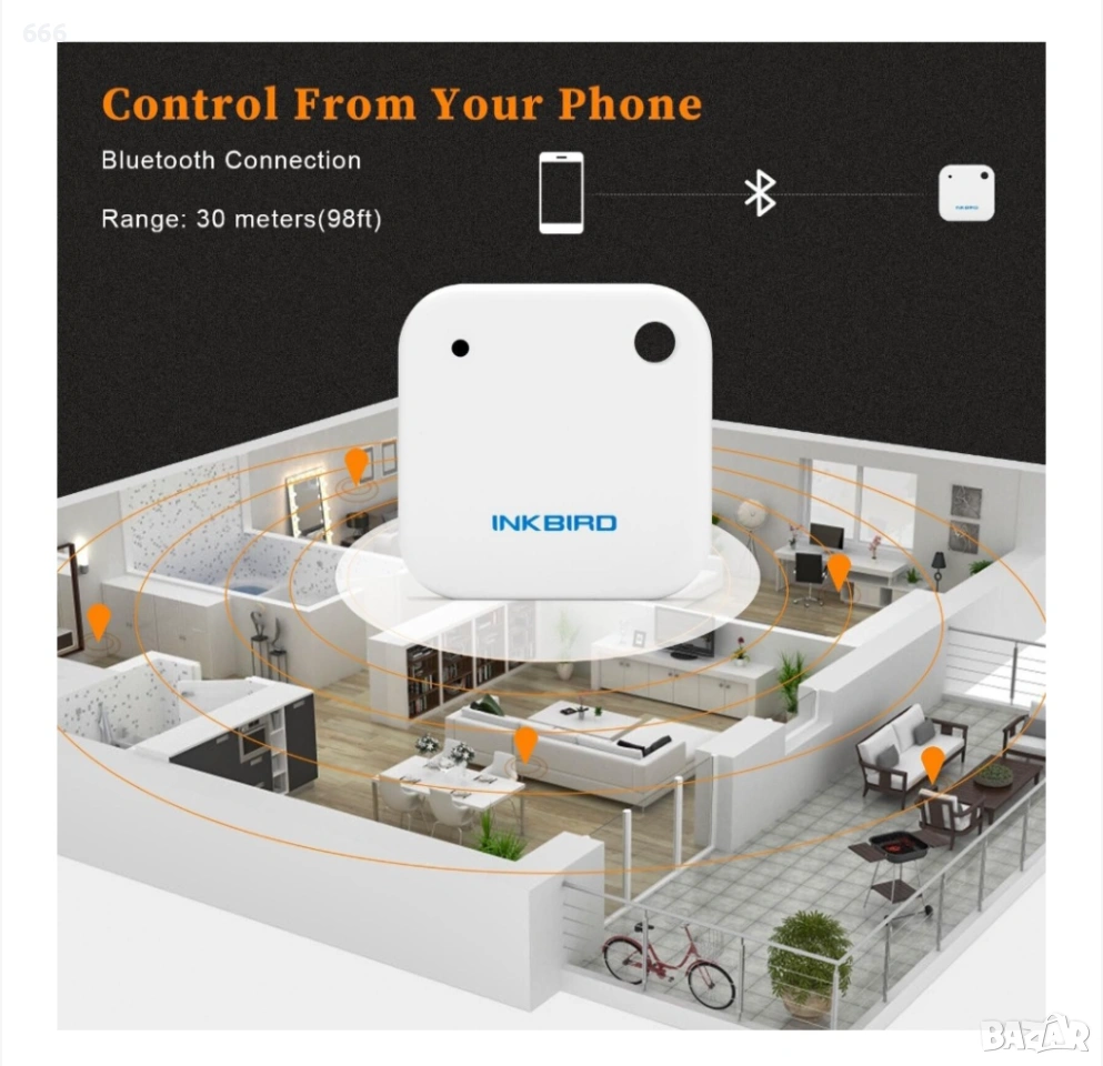 Ако регистраторът на данни е свързан с телефона чрез Bluetooth, тогава можете да наблюдавате и контролирате термометрите в INKBIRD. приложение на определено разстояние (максимум 98 фута).