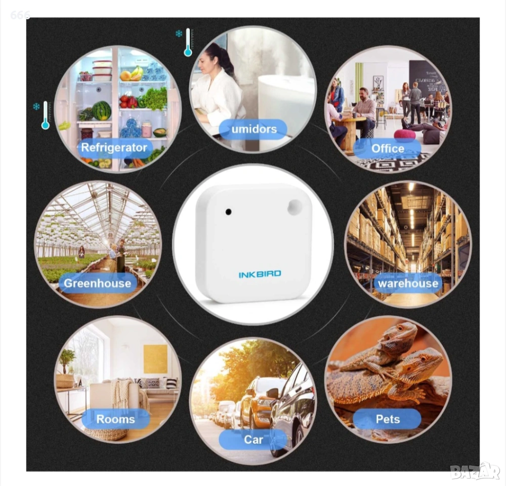 Bluetooth съвместим сензор за температура и влажност, който може да се управлява чрез приложение, а историческите записи и данните в реално време могат да бъдат проверявани отдалечено чрез Bluetooth. Благодарение на водоустойчивостта си IPX4, той осигурява защита срещу пръски и ръжда. Може да бъде поставен директно в хладилник, за да осигури предаване на данни дори при ниски температури.