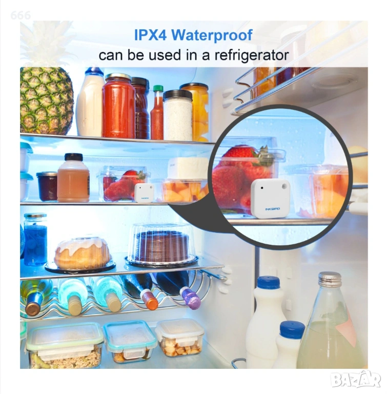 Водоустойчивост IPX4: Може да се използва в хладилник